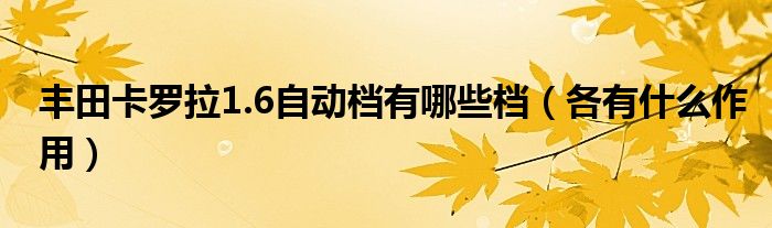 大家好,伊人来为大家解答以上问题。丰田卡罗拉1.6自动档有哪些档,各有什么作用很多人还不知道,现在让我们一起来看看吧!