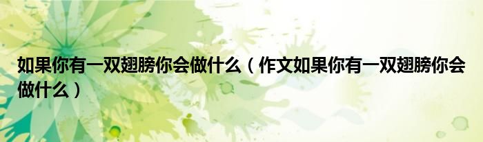 大家好,伊人来为大家解答以上问题。如果你有一双翅膀你会做什么,作文如果你有一双翅膀你会做什么很多人还不知道,现在让我们一起来看看吧!
