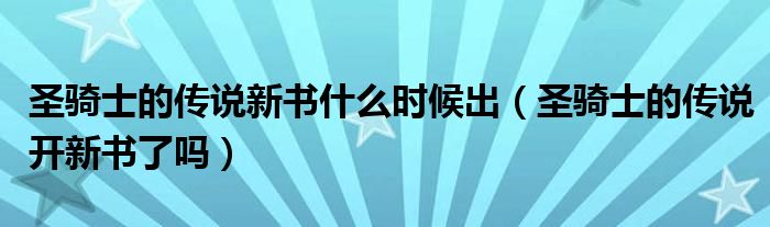 大家好,小生来为大家讲解下。圣骑士的传说新书什么时候出,圣骑士的传说开新书了吗很多人还不知道,现在让我们一起来看看吧!