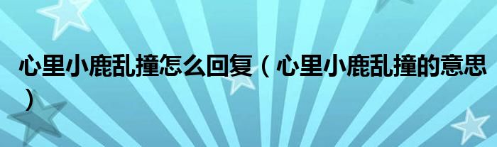 大家好,小生来为大家讲解下。心里小鹿乱撞怎么回复,心里小鹿乱撞的意思很多人还不知道,现在让我们一起来看看吧!