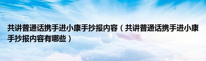 大家好,伊人来为大家解答以上问题。共讲普通话携手进小康手抄报内容,共讲普通话携手进小康手抄报内容有哪些很多人还不知道,现在让我们一起来看看吧!