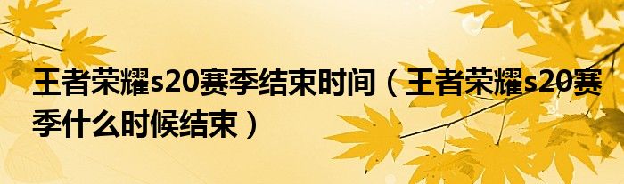 大家好,伊人来为大家解答以上问题。王者荣耀s20赛季结束时间,王者荣耀s20赛季什么时候结束很多人还不知道,现在让我们一起来看看吧!