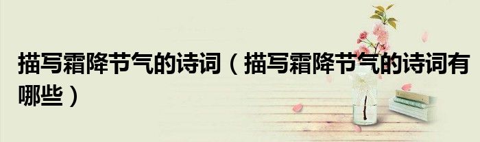 大家好,伊人来为大家解答以上问题。描写霜降节气的诗词,描写霜降节气的诗词有哪些很多人还不知道,现在让我们一起来看看吧!