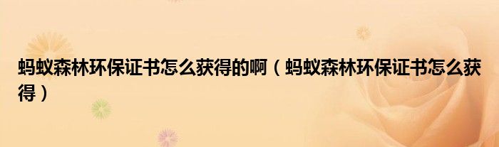 大家好,小生来为大家讲解下。蚂蚁森林环保证书怎么获得的啊,蚂蚁森林环保证书怎么获得很多人还不知道,现在让我们一起来看看吧!