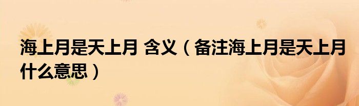 大家好,小生来为大家讲解下。海上月是天上月 含义,备注海上月是天上月什么意思很多人还不知道,现在让我们一起来看看吧!