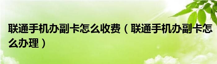 大家好,小生来为大家讲解下。联通手机办副卡怎么收费,联通手机办副卡怎么办理很多人还不知道,现在让我们一起来看看吧!