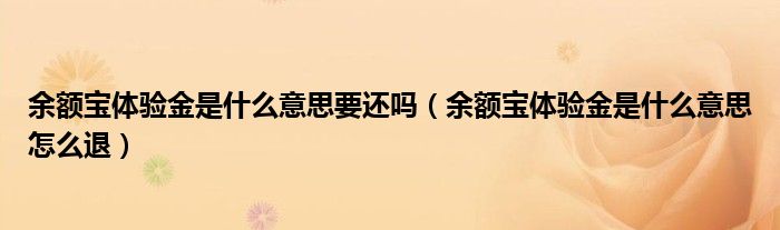 大家好,小生来为大家讲解下。余额宝体验金是什么意思要还吗,余额宝体验金是什么意思怎么退很多人还不知道,现在让我们一起来看看吧!
