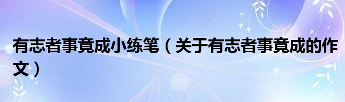 大家好,伊人来为大家解答以上问题。有志者事竟成小练笔,关于有志者事竟成的作文很多人还不知道,现在让我们一起来看看吧!