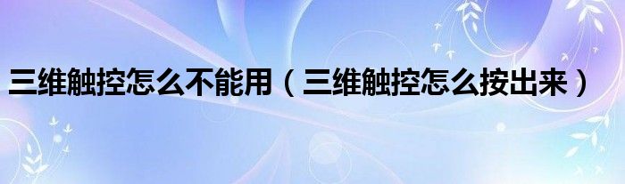 大家好,小生来为大家讲解下。三维触控怎么不能用,三维触控怎么按出来很多人还不知道,现在让我们一起来看看吧!