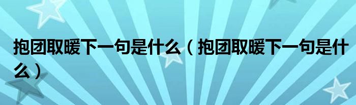 大家好,小生来为大家讲解下。抱团取暖下一句是什么,抱团取暖下一句是什么很多人还不知道,现在让我们一起来看看吧!