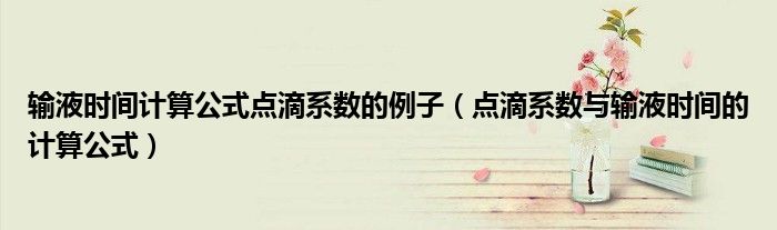 大家好,小生来为大家讲解下。输液时间计算公式点滴系数的例子,点滴系数与输液时间的计算公式很多人还不知道,现在让我们一起来看看吧!