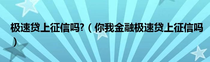 大家好,小生来为大家讲解下。极速贷上征信吗?,你我金融极速贷上征信吗很多人还不知道,现在让我们一起来看看吧!
