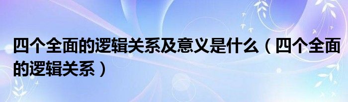 大家好,小生来为大家讲解下。四个全面的逻辑关系及意义是什么,四个全面的逻辑关系很多人还不知道,现在让我们一起来看看吧!