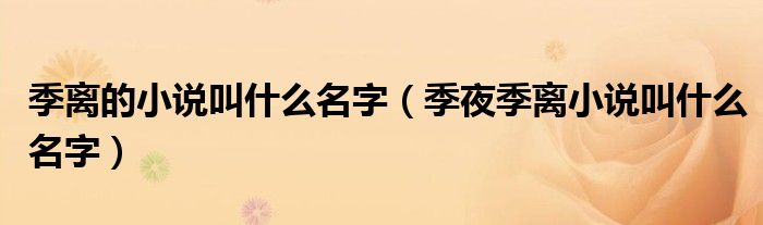 大家好,小生来为大家讲解下。季离的小说叫什么名字,季夜季离小说叫什么名字很多人还不知道,现在让我们一起来看看吧!