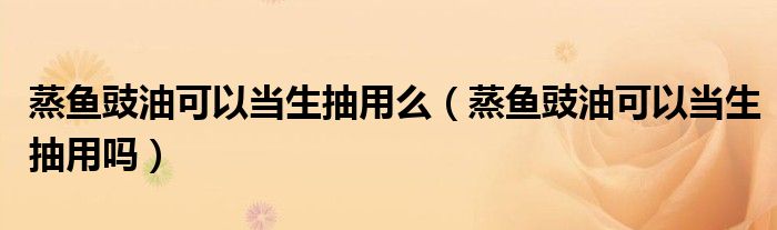 大家好,小生来为大家讲解下。蒸鱼豉油可以当生抽用么,蒸鱼豉油可以当生抽用吗很多人还不知道,现在让我们一起来看看吧!
