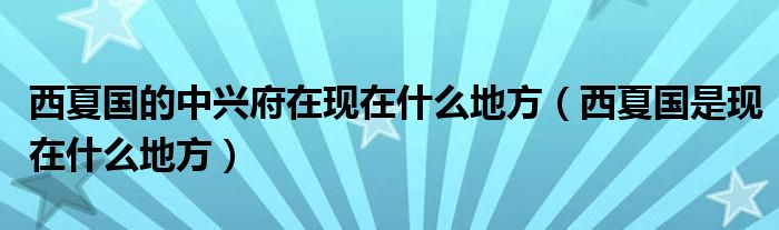 大家好,小生来为大家讲解下。西夏国的中兴府在现在什么地方,西夏国是现在什么地方很多人还不知道,现在让我们一起来看看吧!