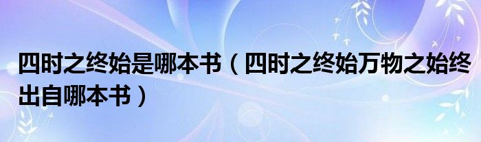 大家好,小生来为大家讲解下。四时之终始是哪本书,四时之终始万物之始终出自哪本书很多人还不知道,现在让我们一起来看看吧!