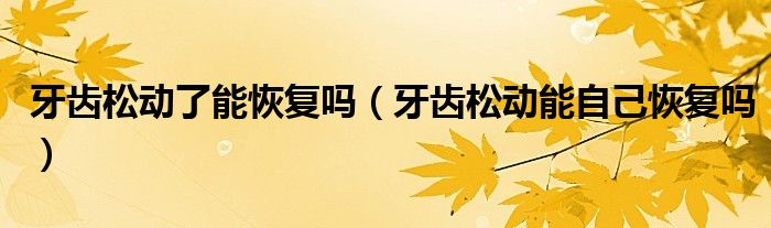 大家好,伊人来为大家解答以上问题。牙齿松动了能恢复吗,牙齿松动能自己恢复吗很多人还不知道,现在让我们一起来看看吧!