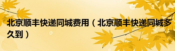 大家好,小生来为大家讲解下。北京顺丰快递同城费用,北京顺丰快递同城多久到很多人还不知道,现在让我们一起来看看吧!