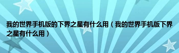 大家好,小生来为大家讲解下。我的世界手机版的下界之星有什么用,我的世界手机版下界之星有什么用很多人还不知道,现在让我们一起来看看吧!