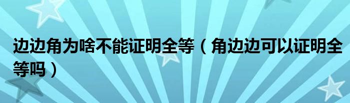 大家好,小生来为大家讲解下。边边角为啥不能证明全等,角边边可以证明全等吗很多人还不知道,现在让我们一起来看看吧!