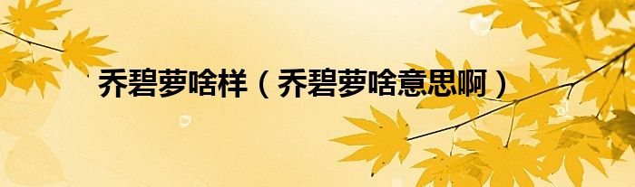 大家好,小生来为大家讲解下。乔碧萝啥样,乔碧萝啥意思啊很多人还不知道,现在让我们一起来看看吧!