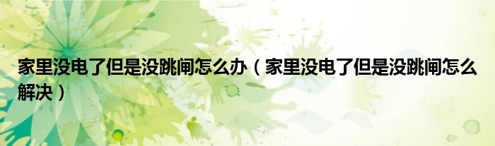 大家好,小生来为大家讲解下。家里没电了但是没跳闸怎么办,家里没电了但是没跳闸怎么解决很多人还不知道,现在让我们一起来看看吧!