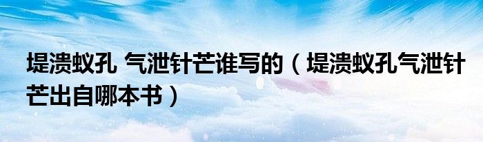 大家好,小生来为大家讲解下。堤溃蚁孔 气泄针芒谁写的,堤溃蚁孔气泄针芒出自哪本书很多人还不知道,现在让我们一起来看看吧!