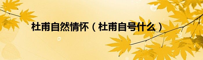 大家好,小生来为大家讲解下。杜甫自然情怀,杜甫自号什么很多人还不知道,现在让我们一起来看看吧!