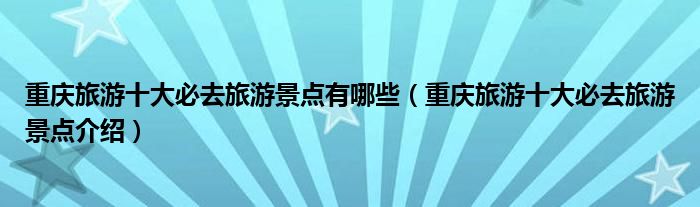 大家好,伊人来为大家解答以上问题。重庆旅游十大必去旅游景点有哪些,重庆旅游十大必去旅游景点介绍很多人还不知道,现在让我们一起来看看吧!