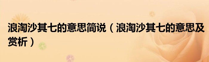 大家好,小生来为大家讲解下。浪淘沙其七的意思简说,浪淘沙其七的意思及赏析很多人还不知道,现在让我们一起来看看吧!