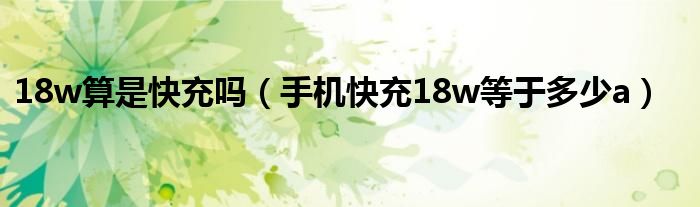 大家好,小生来为大家讲解下。18w算是快充吗,手机快充18w等于多少a很多人还不知道,现在让我们一起来看看吧!