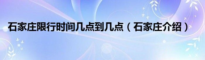 大家好,伊人来为大家解答以上问题。石家庄限行时间几点到几点,石家庄介绍很多人还不知道,现在让我们一起来看看吧!