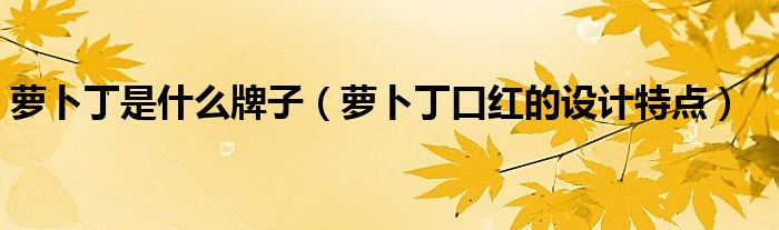 大家好,伊人来为大家解答以上问题。萝卜丁是什么牌子,萝卜丁口红的设计特点很多人还不知道,现在让我们一起来看看吧!