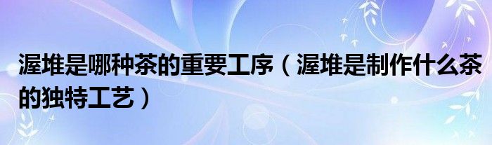 大家好,小生来为大家讲解下。渥堆是哪种茶的重要工序,渥堆是制作什么茶的独特工艺很多人还不知道,现在让我们一起来看看吧!