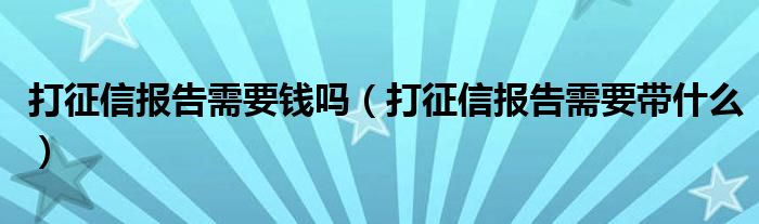 大家好,小生来为大家讲解下。打征信报告需要钱吗,打征信报告需要带什么很多人还不知道,现在让我们一起来看看吧!
