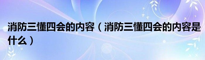 大家好,小生来为大家讲解下。消防三懂四会的内容,消防三懂四会的内容是什么很多人还不知道,现在让我们一起来看看吧!