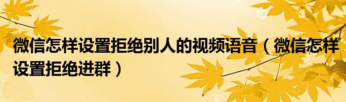 大家好,小生来为大家讲解下。微信怎样设置拒绝别人的视频语音,微信怎样设置拒绝进群很多人还不知道,现在让我们一起来看看吧!