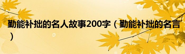 大家好,小生来为大家讲解下。勤能补拙的名人故事200字,勤能补拙的名言很多人还不知道,现在让我们一起来看看吧!