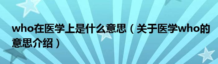 大家好,伊人来为大家解答以上问题。who在医学上是什么意思,关于医学who的意思介绍很多人还不知道,现在让我们一起来看看吧!