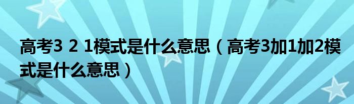大家好,小生来为大家讲解下。高考3 2 1模式是什么意思,高考3加1加2模式是什么意思很多人还不知道,现在让我们一起来看看吧!