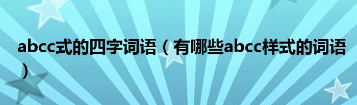 大家好,伊人来为大家解答以上问题。abcc式的四字词语,有哪些abcc样式的词语很多人还不知道,现在让我们一起来看看吧!