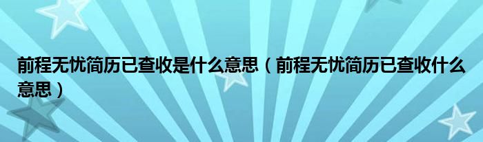 大家好,小生来为大家讲解下。前程无忧简历已查收是什么意思,前程无忧简历已查收什么意思很多人还不知道,现在让我们一起来看看吧!