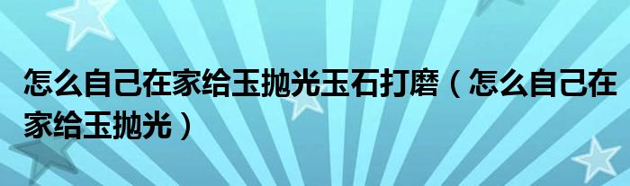 大家好,小生来为大家讲解下。怎么自己在家给玉抛光玉石打磨,怎么自己在家给玉抛光很多人还不知道,现在让我们一起来看看吧!