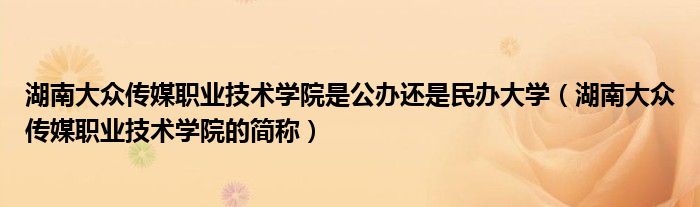 1、湖南大众传媒职业技术学院是一所国有大学。