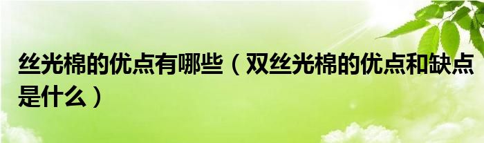 大家好,小生来为大家讲解下。丝光棉的优点有哪些,双丝光棉的优点和缺点是什么很多人还不知道,现在让我们一起来看看吧!