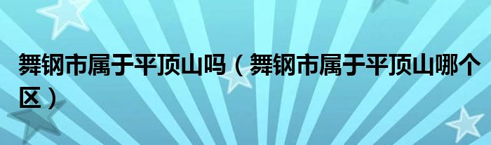 大家好,小生来为大家讲解下。舞钢市属于平顶山吗,舞钢市属于平顶山哪个区很多人还不知道,现在让我们一起来看看吧!