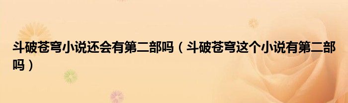 大家好,小生来为大家讲解下。斗破苍穹小说还会有第二部吗,斗破苍穹这个小说有第二部吗很多人还不知道,现在让我们一起来看看吧!