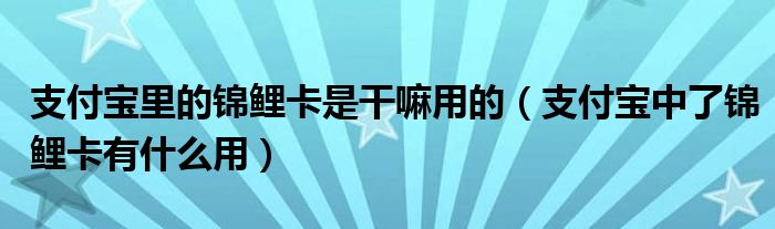大家好,小生来为大家讲解下。支付宝里的锦鲤卡是干嘛用的,支付宝中了锦鲤卡有什么用很多人还不知道,现在让我们一起来看看吧!