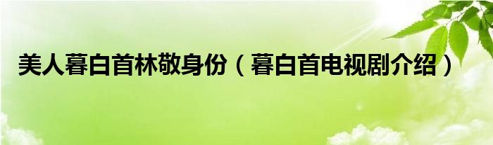 大家好,伊人来为大家解答以上问题。美人暮白首林敬身份,暮白首电视剧介绍很多人还不知道,现在让我们一起来看看吧!